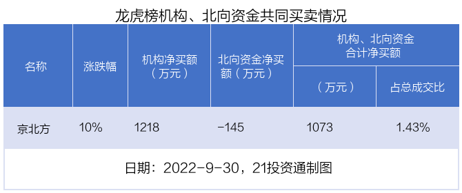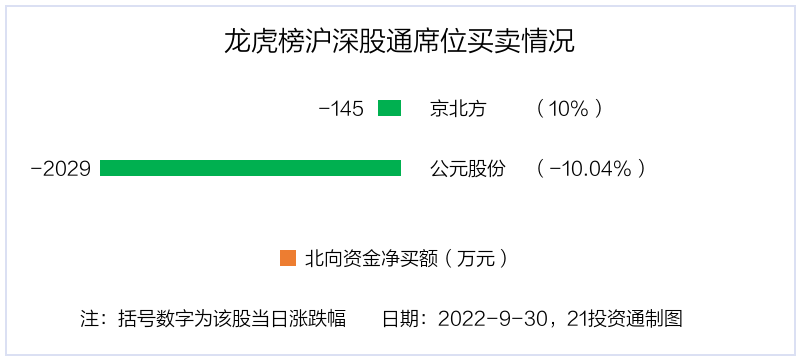 9月30日,北向资金参与龙虎榜中的个股共有2只,均为深股通净卖出,合计金额2174.7万元。