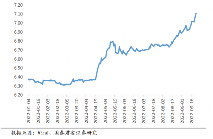 美元对人民币汇率快速升值(单位:美元/人民币)/图片来源:国泰君安证券