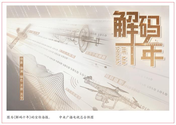 2022年8月9日,一档清风扑面、耳目一新的节目在《新闻联播》亮相。13集系列报道《解码十年》一经播出,即引发广泛关注和热评。作为总台迎接党的二十大的重磅作品,《解码十年》以“新发展理念”为魂,首次尝试“卫星视角+大数据调查+新闻故事”的报道方式,生动、立体地展现历史性成就和历史性变革,解开奋进路上的成就之码、力量之码、奋进之码、合作之码,让场景随着数字跃动、让人物伴着数字鲜活、让10年巨变可感可知可信可敬。节目实现融媒体传播,全网累计触达量超过60亿人次,获得社会各界一致好评。