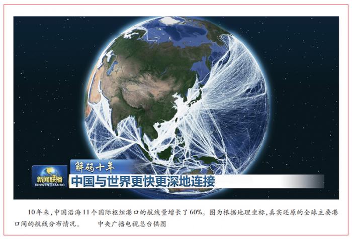 运用新技术,打开新视角,带来新认知。新科技是新闻宣传事业高质量发展的强大推动力。《解码十年》充分利用高技术、强装备特点,为受众打造了新的认知视角。一是卫星视角的规模化应用,营造出一种大范围、大景深的“空间视角”,带来超乎想象的感官冲击和视觉震撼。在《让母亲河永葆生机活力》一集中,通过环境遥感卫星对数十年间黄河流域的植被进行图像捕捉,还原了黄河沿线的生态变化,让观众通过卫星视角,清晰地看到黄河沿线绿色草地与黄色沙漠之间的交界线。10年间,绿进沙退——这条“黄河绿线”,最远向西推进了150公里,凸显了黄河沿线的生态巨变。二是国家级大数据的集中调用。在各方大力配合下,节目打通50多个部委和直属单位、顶尖级大数据机构、科研院所的国家大数据库,调取数以万亿级的海量大数据,经过错综复杂的计算、推演、分析,再将分析结论以视觉艺术的形式加以呈现。在《绘就命运与共新蓝图》一集中,节目从近10年中国与全球各国的贸易交易数据中,推演出了中国走向全球供应链中心位置的历史进程。三是无人机、穿越机、手持电影机等我国自主研发高科技装备的广泛应用。高科技装备的创新应用,提升了节目的科技感、渲染力和时代性,彰显了主流媒体强大的节目制作能力和科技创新实力。