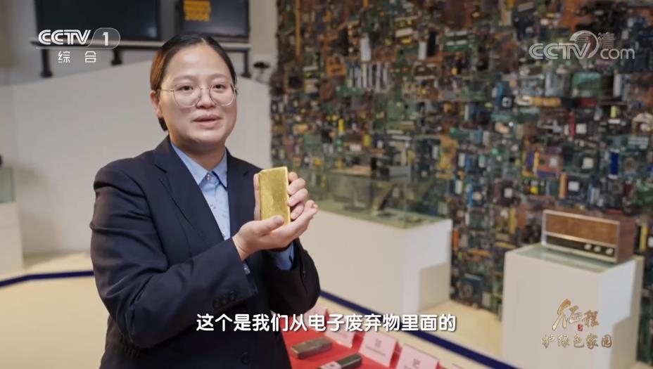 资源循环利用与新材料研究项目负责人 李琴香:这个是我们从电子废弃物里面的线路板提取出来的,3公斤的这个黄金需要手机线路板大概是8吨左右,40万台手机,这个金砖都价值120万(元),沉甸甸的。