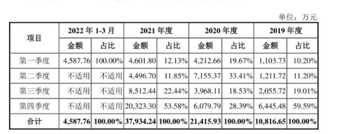 招股书中表示,这主要与客户项目里程碑完成及客户确认的时间分布密切相关。此外,由于公司的员工工资、固定资产折旧等各项费用在年度内相对均匀发生,因此收入季节性波动的特点可能会造成公司出现季节性盈利较低甚至亏损的情形,进而公司经营业绩存在季节性波动风险。
