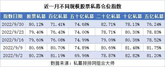 私募排排网组合大师数据显示,截至9月30日,股票私募仓位指数为80.12%,较上周小幅上涨了0.72%。同时,这也是股票私募仓位指数在经历了连续3周的下跌之后,终于迎来了小幅反弹。