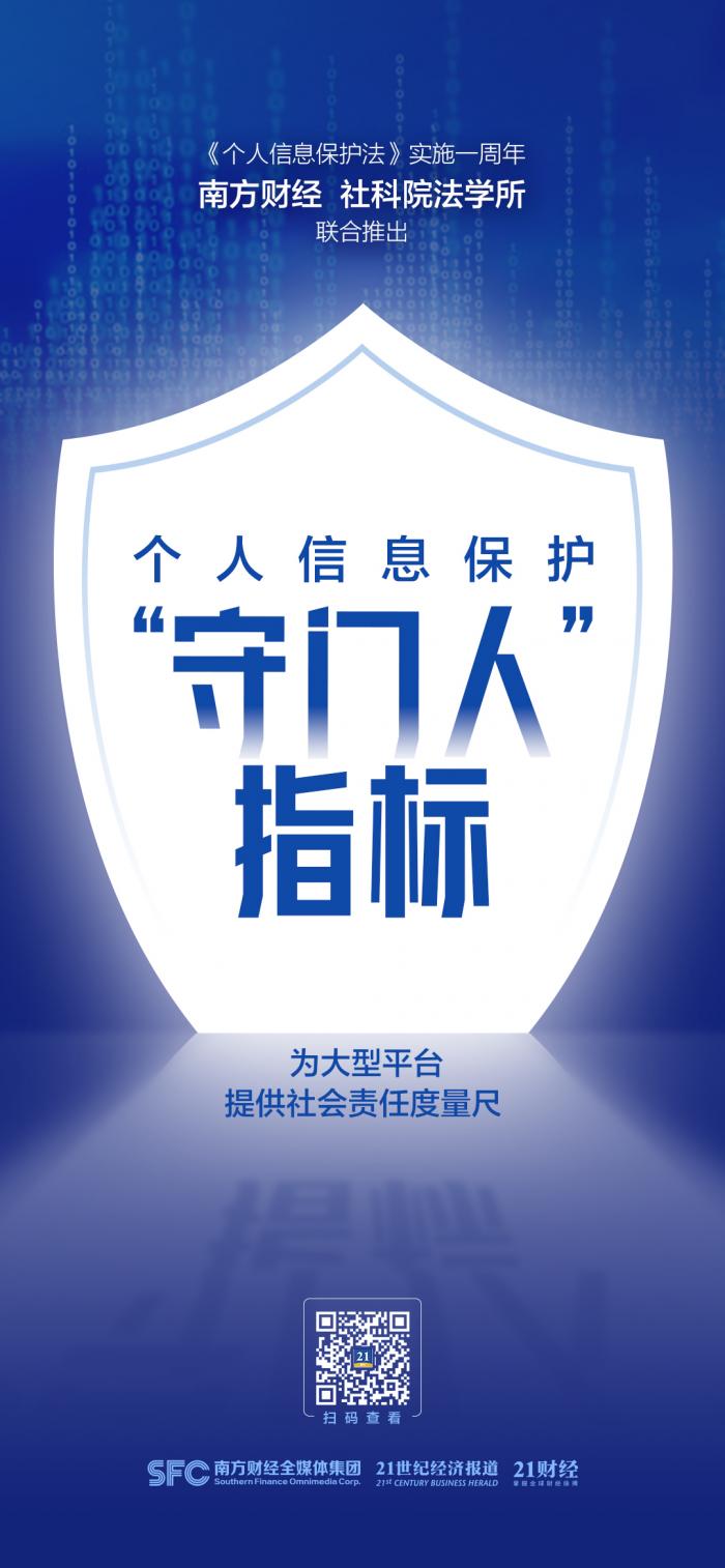 值此《个人信息保护法》实施一周年之际,将推出由南方财经集团与中国社会科学院法学所共同组成课题组研发的“守门人”社会责任指标体系,“守门人”平台社会责任履行从此有了度量尺。