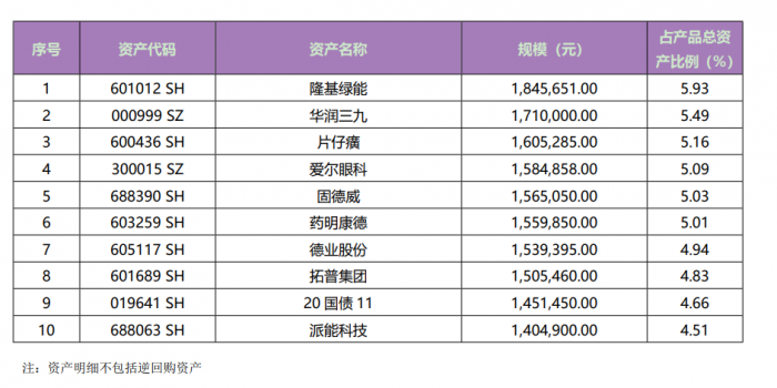 (“阳光红卫生安全主题精选”2022年上半年末前十大持仓资产)