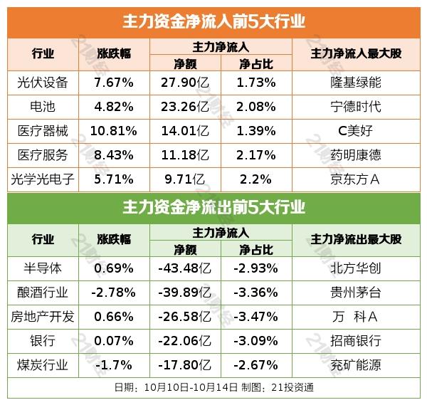 过去一周(10月10日-10月14日),A股三大指数震荡走高。截至10月14日收盘,沪指报3071.99点,周涨1.57%;深成指报11121.72点,周涨3.18%;创业板指报2434.22,周涨6.35%。