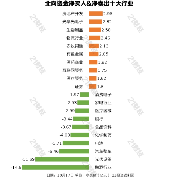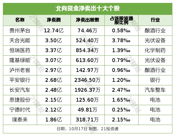 据21投资通智能监测,10月17日,北向资金净卖出44.25亿元,其中沪股通净卖出29.76亿元,深股通净卖出14.48亿元。