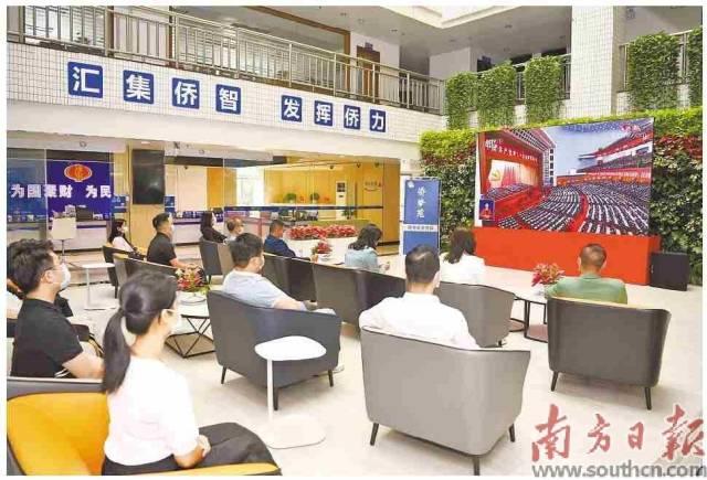 各界代表在江门“侨梦苑”集中收听收看党的二十大开幕会直播。南方日报记者 杨兴乐 摄