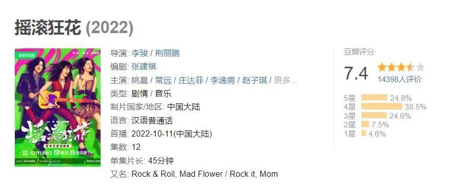 截至目前,这部剧在豆瓣评分为7.4,超过1.4万人打分,但是两极分化的评论各立山头。打了五星的说姚晨塑造的女主有“不care一切的拽感”,令人眼前一亮;打了一分的说它“极其尴尬”,简直“有辱摇滚精神”。