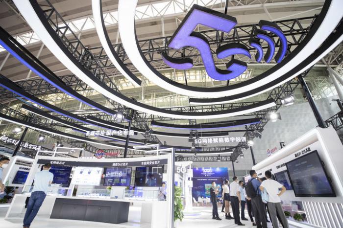 8月10日,2022世界5G大会在黑龙江省哈尔滨市开幕。工作人员在布展。新华社记者张涛摄