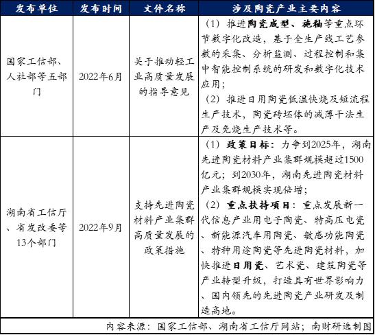 2、政策陆续出台促进陶瓷产业高质量发展