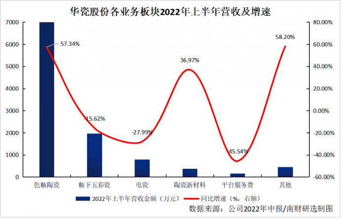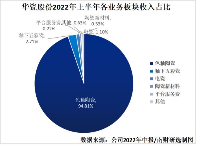 从2022年上半年公司营收构成来看,拳头产品色釉陶瓷收入继续保持高速增长,同比增长57.34%,收入占比高达94.81%。陶瓷新材料也保持较快增长,同比增长36.97%。