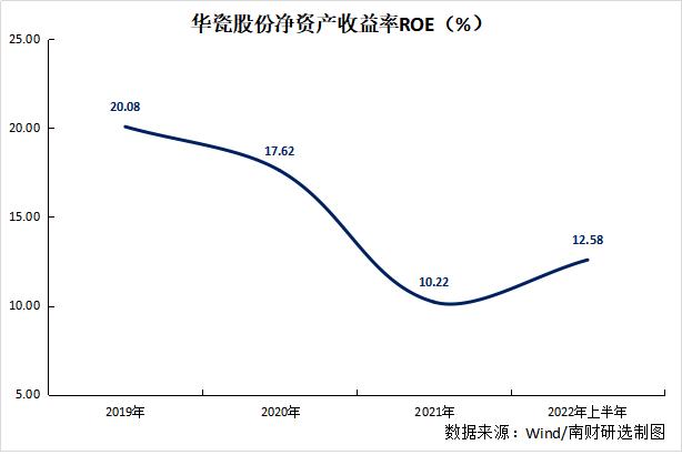 从净资产收益率来看,华瓷股份2019年、2020年、2021年及2022年上半年连续保持两位数,2022年上半年为12.58%。
