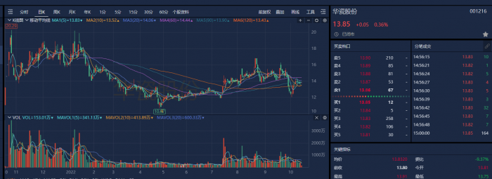 从二级市场走势上来看,华瓷股份股价近期总体保持反弹态势。据南财金融终端显示,10月11日以来(截至2022年10月21日),公司股价近9个交易日合计上涨10.98%。