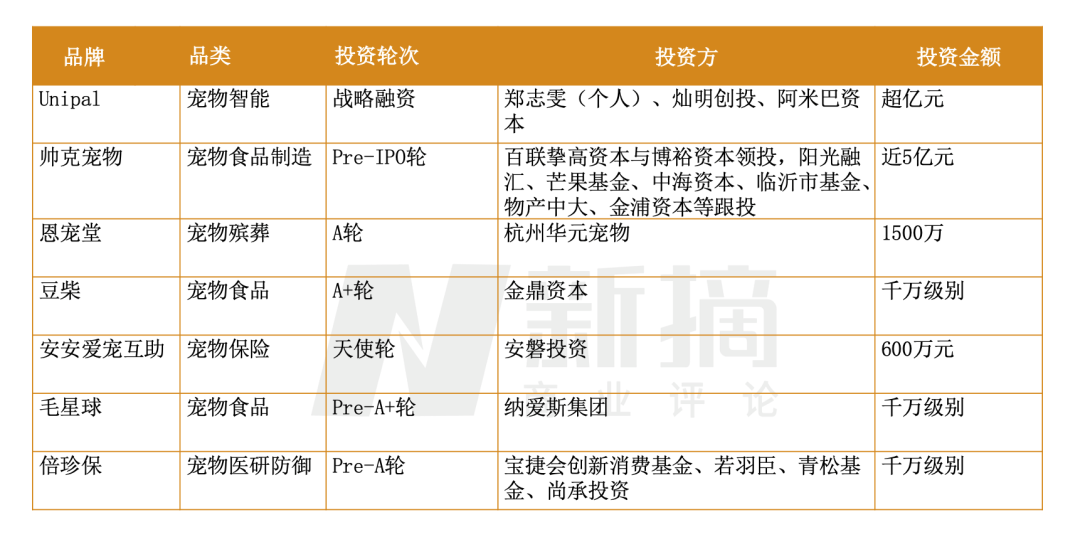 除常规的宠物食品、宠物用具外,宠物殡葬、宠物医疗、宠物保险、宠物服务线下门店等在外界看来颇为小众的领域,也陆续拿到动辄上千万甚至过亿的投资。