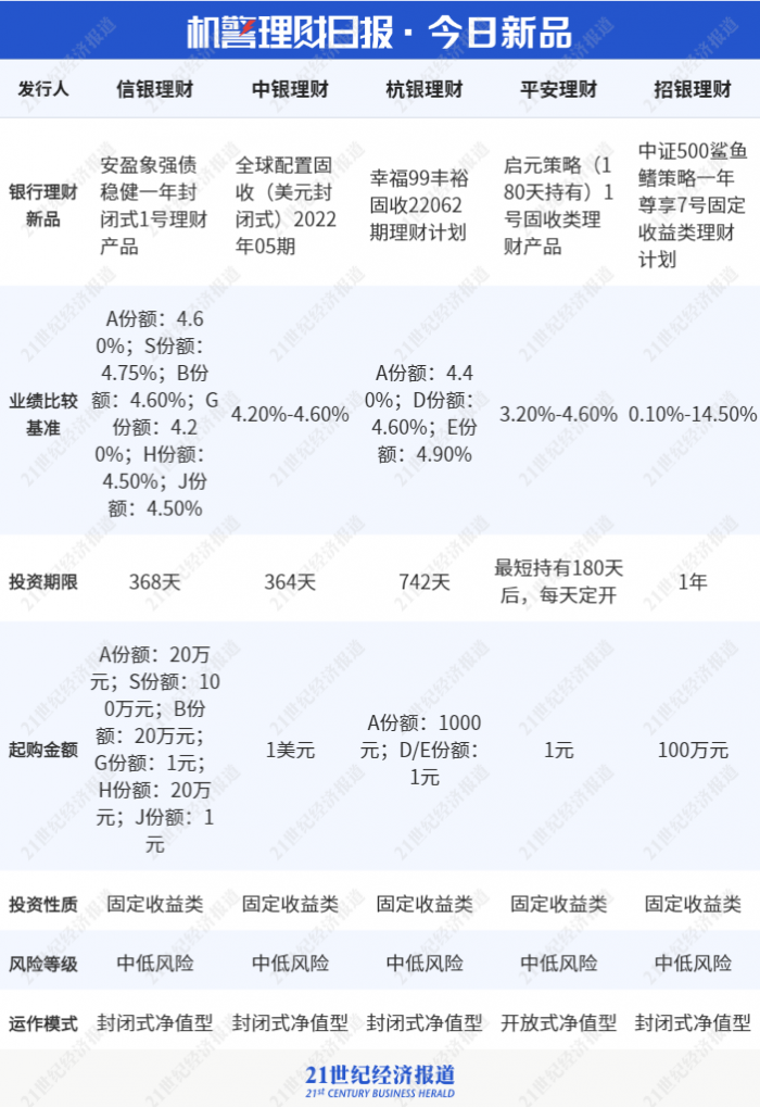 《机警理财日报》是南财理财通、21世纪经济报道旗下投资理财、财富管理特色栏目,旨在帮投资者守好“钱袋子”,并创造更高的行业价值。
