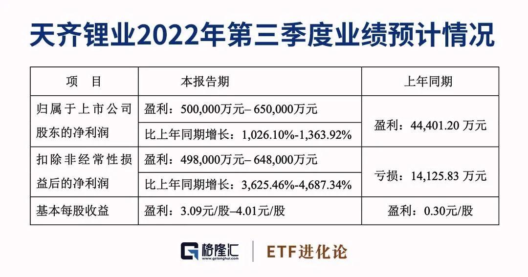 天齐锂业净利润预增幅度排名第一,公司预计前三季度净利润为152亿元至169亿元,同比增长27.7倍至30.9倍。报告期内,公司受益于全球新能源汽车景气度提升,锂离子电池厂商加速产能扩张,下游正极材料订单回暖等多个积极因素的影响,公司主要锂产品销量和售价均明显增长。