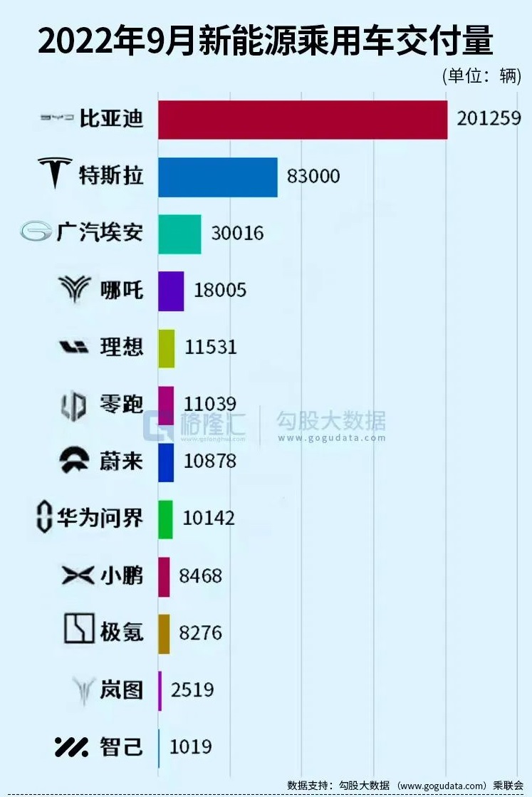 比亚迪此前披露的产销数据显示,2022年1月至9月,新能源汽车销量约118万辆,同比增长249.56%,前三季度销量超过特斯拉交付的90.86万辆。