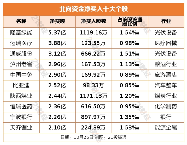 据21投资通智能监测,10月25日,北向资金净买入28.45亿元,其中沪股通净买入22.56亿元,深股通净买入5.89亿元。
