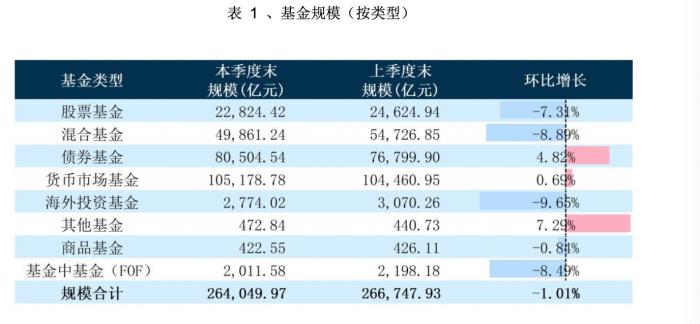 整理来看,受市场环境影响,基金规模三季度出现环比下滑,但依然保持在26万亿以上,长期增长态势不变。