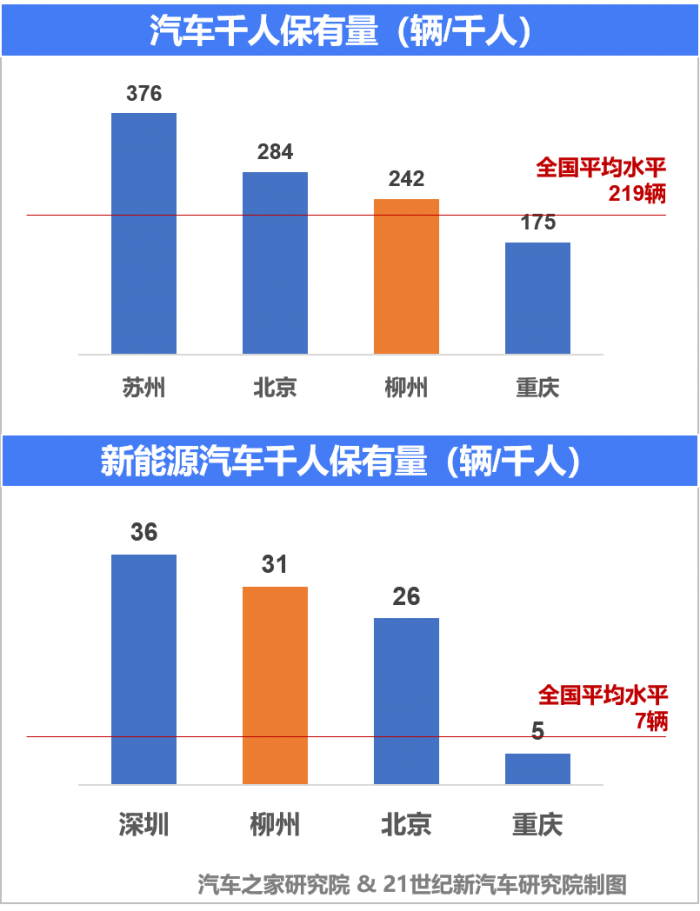 截至2022年6月,柳州市新能源汽车保有量达13.1万辆,新能源汽车千人保有量为31辆,远高于全国平均水平(7辆),仅次于深圳,全国排名第二。