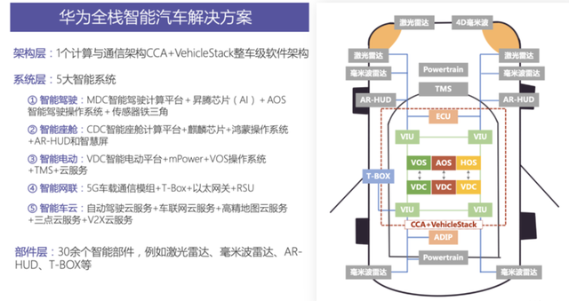 这个名叫“华为全栈智能汽车解决方案”的工具包,包括了五大智能系统:智能驾驶、智能座舱、智能电动、智能网联、智能车云。