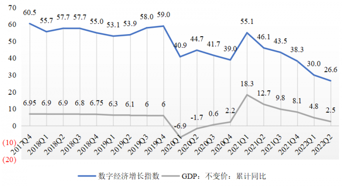 图8:二季度数字经济增长指数降幅小于GDP回落幅度