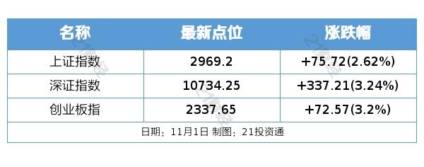 A股三大指数集体收涨,沪指涨2.62%,深成指涨3.24%,创业板指涨3.20%,沪深两市全天成交额9775亿元,超4300只个股上涨,北向资金全天净买入61.55亿元。