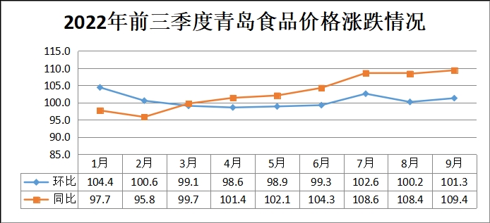 前三季度,青岛食品价格同比上涨2.8%,影响CPI上涨约0.49个百分点