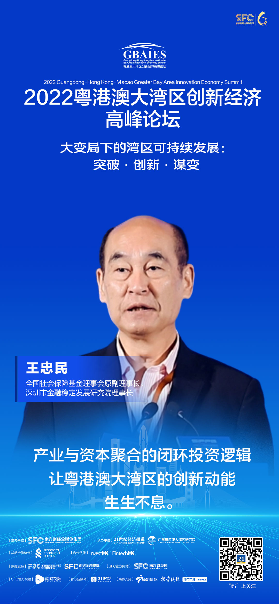 “资本力量让渡风险补偿,带来社会总资本的集聚和增加,最终形成产业和资本聚合在一起的闭环投资逻辑。由此,粤港澳大湾区的创新动能将源源不断,生生不息。”王忠民总结道。