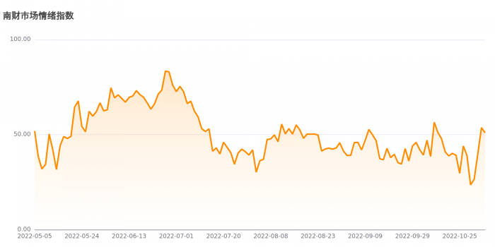 今日南财市场情绪指数为50.9,较前一交易日53.7下跌,市场投资热度降低。