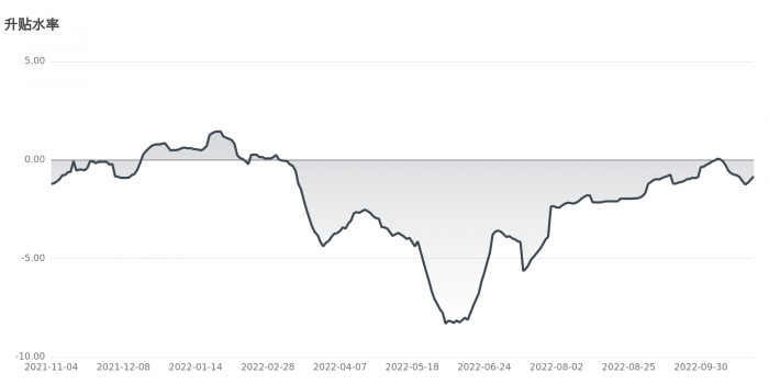 今日该指标值为-0.83%,目前该指标处于近一年中立区间,说明投资者对A股持中立情绪。反映期货市场投资者对市场的看法,该指标越高说明投资者认为当前市场较强,越低则说明认为市场相对较弱,因而与上证指数正相关。