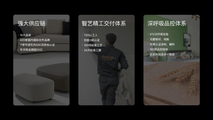 而在每一套房屋的装修交付上,自如与420家国内外品牌合作,组建起覆盖16大品类的强大供应链;以智艺精工交付体系的190项标准工艺实现平均34个工作日完成房屋改造;同时,自如全面落地深呼吸品控体系,采用无醛板材、环保认证涂料等,系统性打造环保、健康、宜居的室内空间。