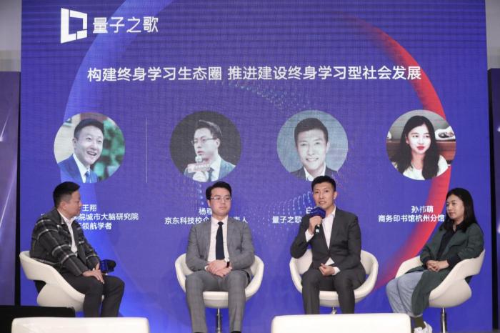 活动现场,量子之歌还与人民阅读进行战略合作签约,共同探索构建知识分享生态体系。人民日报数字传播副总经理、人民阅读董事长兼总经理柴哲彬在致辞中表示,终身学习服务要以顺应信息社会的快速发展,以满足社会成员各个阶段的需求为宗旨,同时在科技赋能下,不断地完善教学服务模式,不断的探寻提升学习效率,满足多元学习需求的增长点。随后,量子之歌还与京东科技达成共建终身学习生态圈的合作意向,在圆桌对话环节,京东科技校企合作负责人杨程表示,京东科技和量子之歌此次合作,将通过双方在技术手段和内容研发方面的优势能力,解决在构建学习型社会过程中的难点和挑战。他相信,通过多方努力,未来的学习型社会,一定是高度多样化、标准化、体系化、数字化的“四化一体”,从而不断缩小地域、不同学校带来的差距,最终实现教育公平。