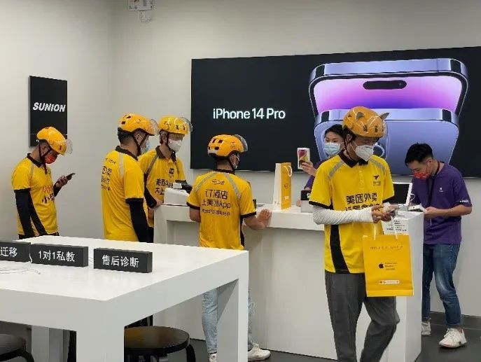 外卖小哥走进实体品牌店取货正变得越来越常见。(图源:网络)