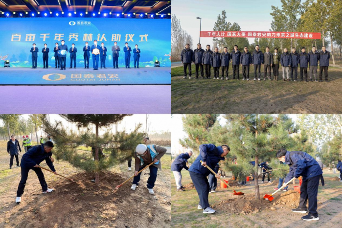 国泰君安证券与中国雄安集团生态建设投资有限公司共同举行百亩千年秀林认捐助养仪式。国泰君安社会公益基金会通过员工自愿捐赠结合基金会配捐形式,共计认助雄安新区“千年秀林”份额2000份,认助总额超过60万元。国泰君安证券党委副书记、监事会副主席吴红伟在仪式上代表国泰君安证券全体员工向中国雄安集团生态建设投资有限公司董事长李振伏赠送对“千年秀林”美好祝愿的“心愿箱”。国泰君安证券相关领导及员工代表于论坛前赴雄安新区北部林带开展了植树公益活动。