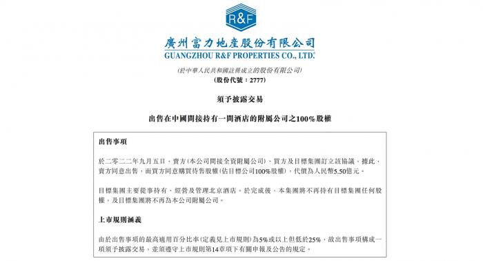 富力同时加强了资产处置的力度。
