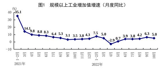 10月份,面对更趋复杂严峻的国际环境和国内疫情新发多发等多重挑战,在以习近平同志为核心的党中央坚强领导下,各地区各部门认真学习贯彻落实党的二十大精神,坚决贯彻落实党中央、国务院决策部署,按照疫情要防住、经济要稳住、发展要安全的要求,高效统筹疫情防控和经济社会发展,加力落实稳经济各项举措,国民经济延续恢复态势,工业投资稳定增长,就业物价总体平稳,新动能积蓄增强,民生保障有力有效,经济社会大局稳定。