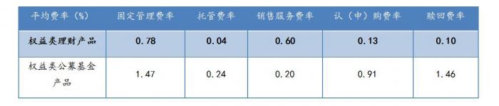 可以看出,就投向权益类市场的资管产品而言,银行理财产品相较公募基金产品在费率上仍有显著优势。