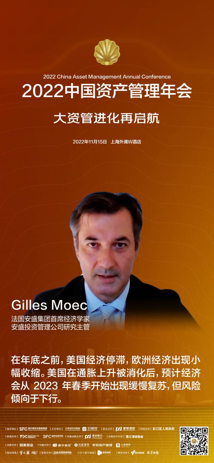 法国安盛集团首席经济学家、安盛投资管理公司研究主管Gilles Moec在“大类资产配置主题论坛”上发表了他对于世界经济问题中通胀问题的看法。Gilles Moec提出,短期来看,“经济会从 2023 年春季开始出现缓慢复苏”,中期则需关注“社会凝聚力和利率、绿色经济的成本、去全球化风险”三个问题。