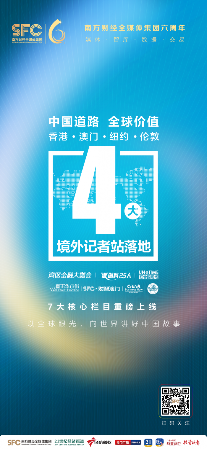 以“湾区一流、国内一流、国际知名”为目标的南方财经全媒体集团及21世纪经济报道,一直稳步推进全球布局。目前已设立香港、澳门、纽约、伦敦四大境外记者站,充分发挥专业化、全媒体的内容生产能力,持续推出融媒体内容产品,以全球眼光,向世界各国讲好中国故事;以专业财经视角,传播中国声音;以最快最深的速度解读市场风云,把握全球发展脉搏。目前四大境外记者站,已陆续推出七档王牌产品。
