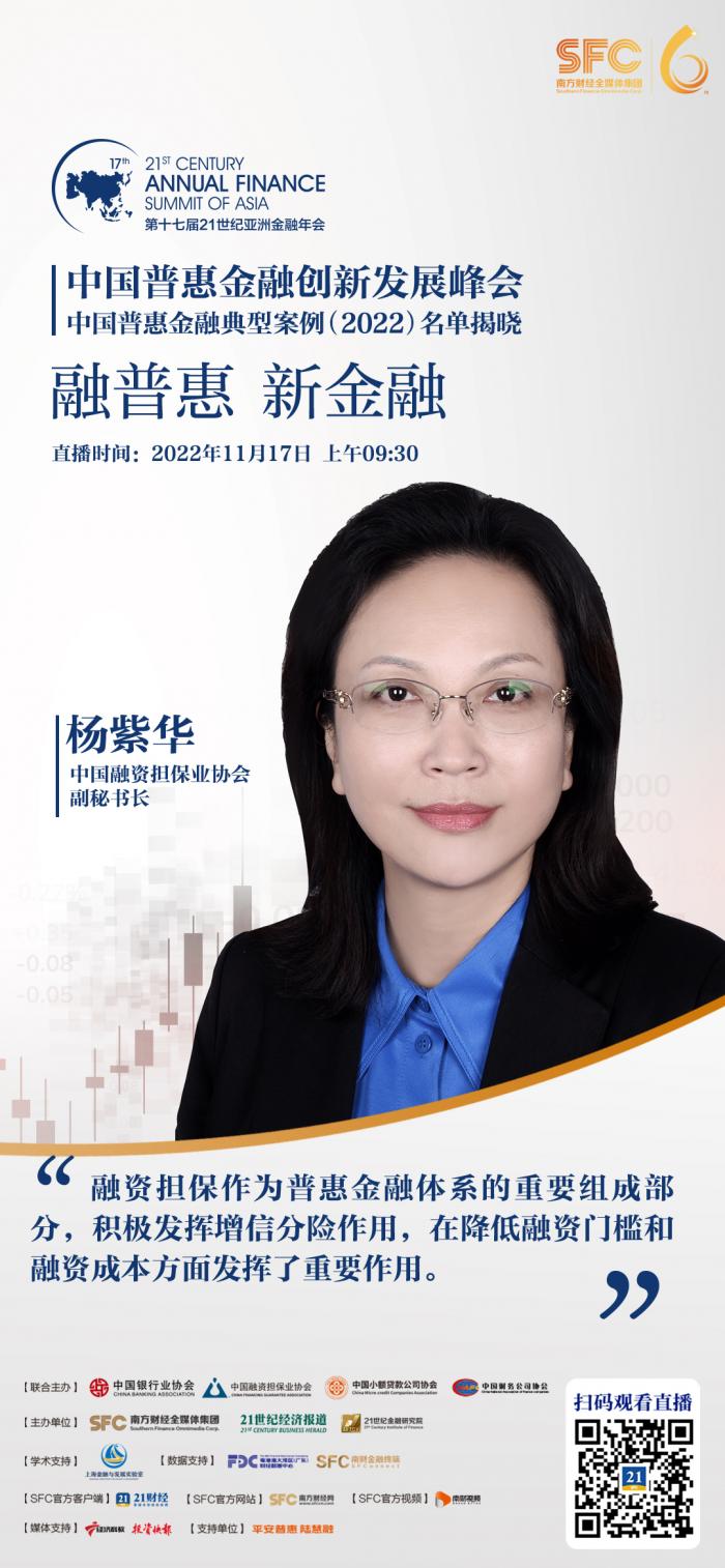 杨紫华表示,随着《推进普惠金融发展规划(2016-2020年)》的如期收官,我国已基本建成与全面建成小康社会相适应的普惠金融体系。2022年2月,中央全面深化改革委员会第二十四次会议审议通过《推进普惠金融高质量发展的实施意见》,为下一阶段融资担保助力普惠金融发展明确了方向和目标。