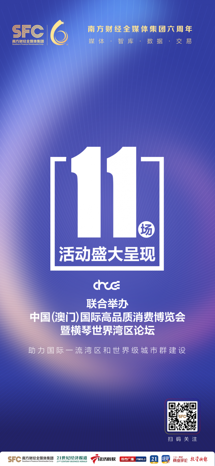 助力国际一流湾区建设,南财集团联合举办中国(澳门)国际高品质消费博览会暨横琴世界湾区论坛,11场重磅活动即将盛大呈现。
