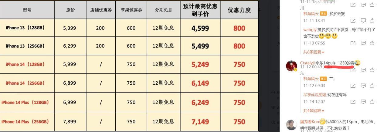 当然,iPhone 持续热卖,与各大电商平台给出的巨额补贴也有直接关系,比如双十一天猫给出了最高800的优惠力度,而京东更是针对iPhone 14 Plus开出了1250的神券,如此大额的平台补贴券,成本肯定不只京东平台单方面承担,虽然与苹果的具体分摊比例是商业机密,但也说明,苹果的旺盛销量,也是付出了一定的营销成本的。
