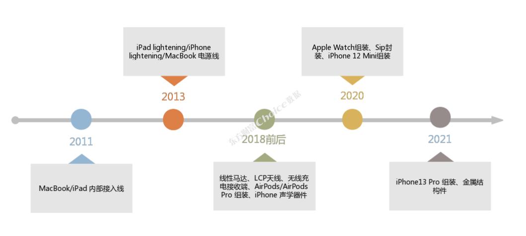 为苹果提供电池模组的研发设计与定制成品的,代表供应商为欣旺达;为苹果提供线性马达(taptic engine)、LCP天线和声学器件的代表供应商有立讯精密、信维通信、歌尔股份、闻泰科技等;