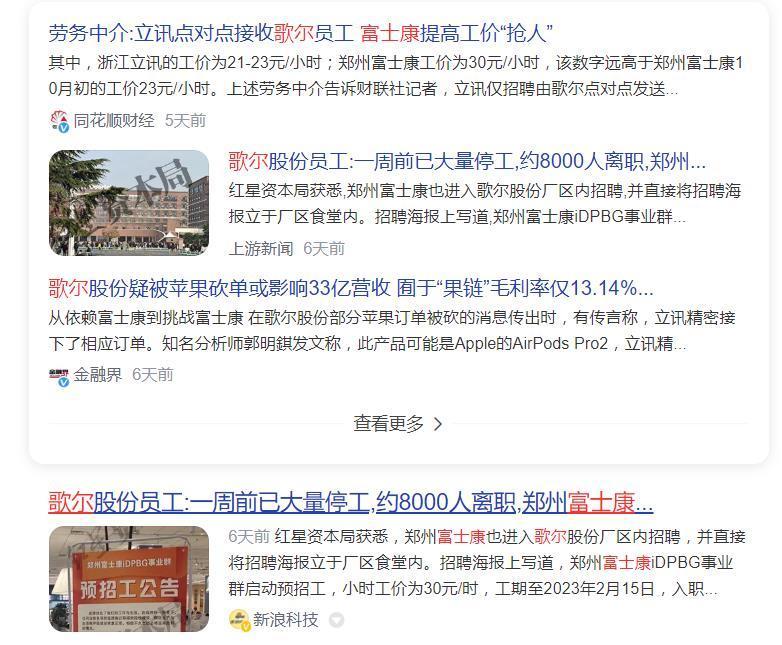 歌尔苹果订单停止的后果也是非常比较严重的,除了当年期财报营收的数十亿亏空之外,多家媒体报道称歌尔有约8000名小时工离职,而且,因为立讯精密承接了新的AirPods Pro 2的产能指标,几乎在点对点接收歌尔的离职工人,更妙的是,集河南全省之力招工的富士康,不惜开大价把小时工钱涨到30元来抢人。