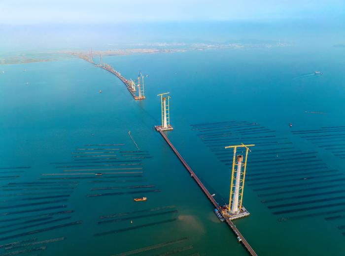 (建设中的黄茅海跨海通道。 广东交通集团供图)