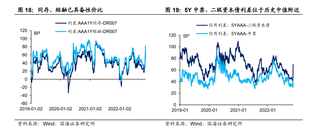 目前,“AAA同业存单-DR007”利差,已经调整至2019年以来77%分位数;“AAA短融-DR007”利差,已经调整至2019年以来87%分位数。同业存单、短融已具备较高配置性价比。