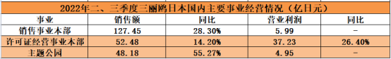 主题公园事业,今年二、三季度,三丽鸥彩虹乐园销售额38.38亿日元,同比增长52.5%,营业利润4.56亿日元,入园人数57万人,同比增长58.4%。