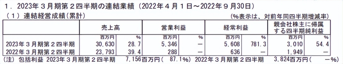 (文创潮这里需要指出的是,日本公司的财报年度大多数为4月1日至第二年的3月31日,因此财报二季度往往指的是日历年的三季度。为便于理解,本文以下部分中如无说明,文创潮按日历年进行表述。)